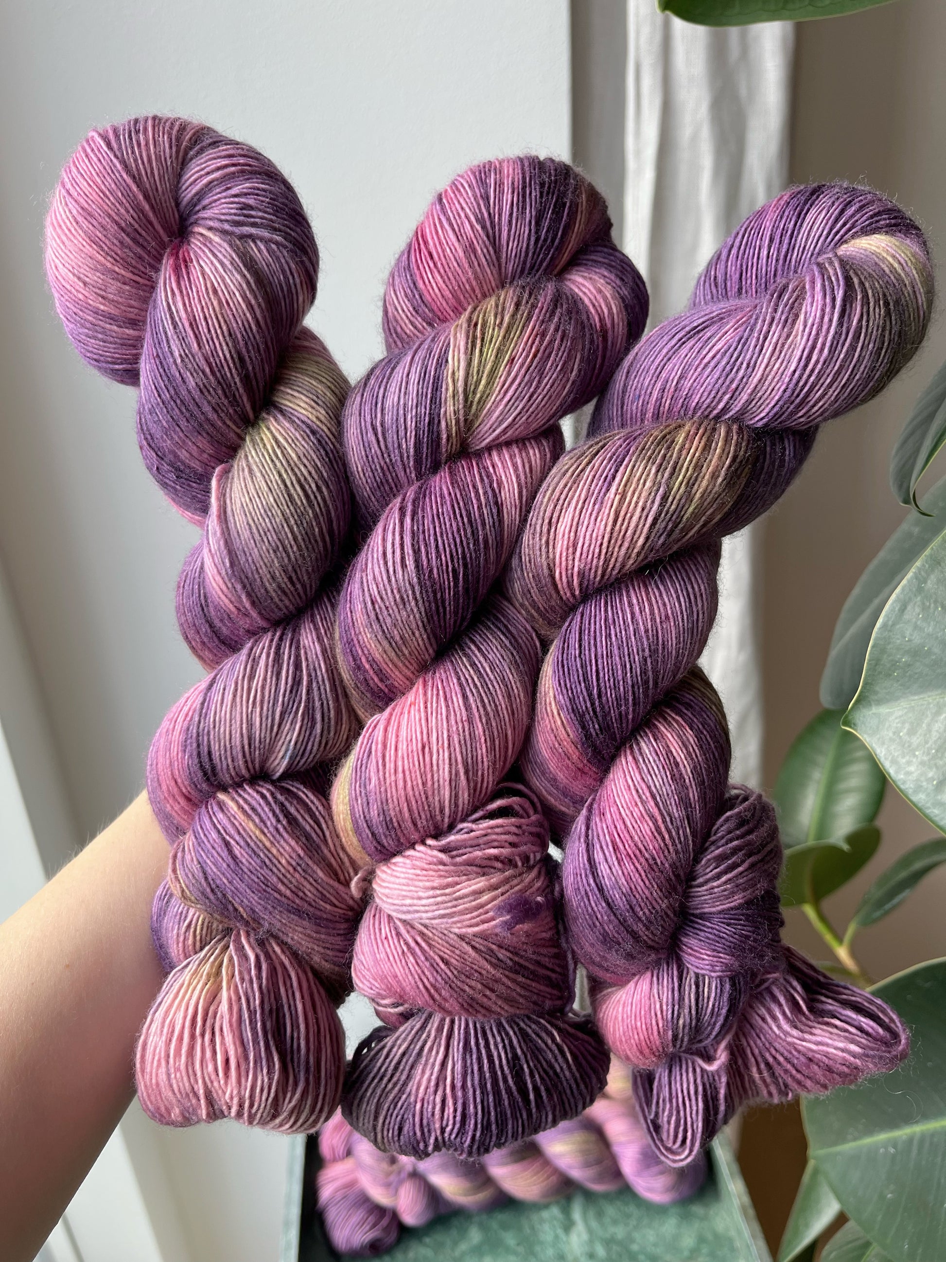 Da vi forhandler håndfarvet garn, skal man som kunde være opmærksom på, at der kan være små nuanceforskelle fra fed til fed og fra bad til bad.
