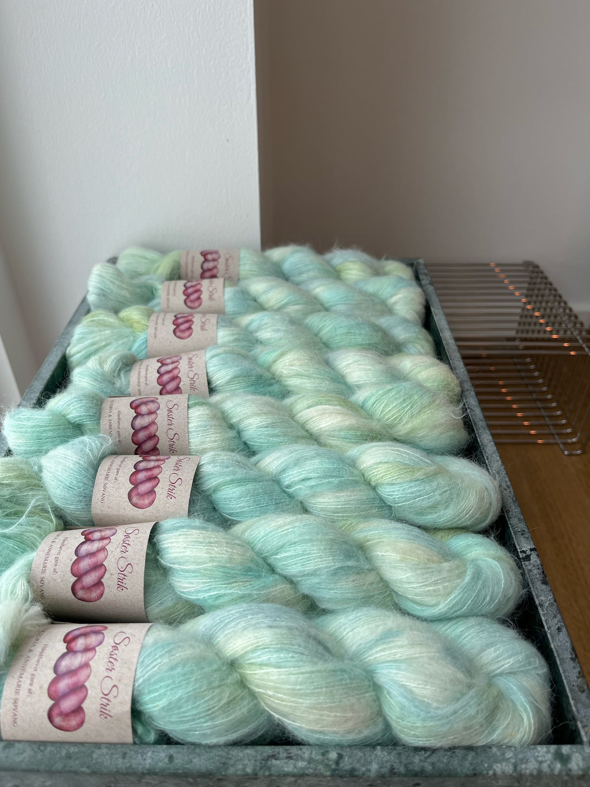 Da vi forhandler håndfarvet garn, skal man som kunde være opmærksom på, at der kan være små nuanceforskelle fra fed til fed og fra bad til bad.